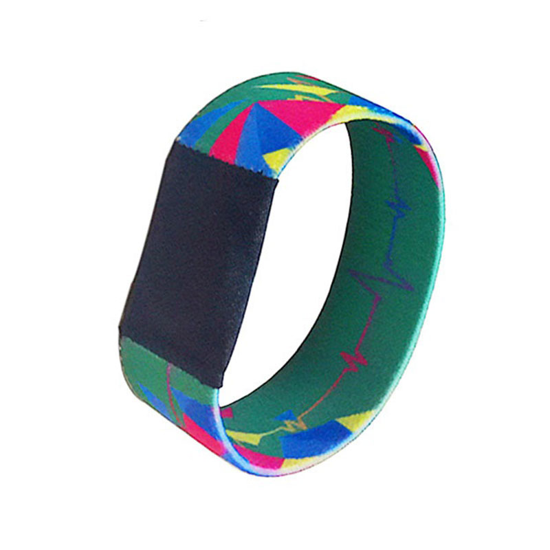 Ақылды мата білезіктері білезікке тағуға ыңғайлы және берік смарт РЖ арнайы пішінді картасының бір түрі болып табылады. Білезік электронды жапсырма киюге ыңғайлы, сәнді, сыртқы түрі әдемі және сәндік экологиялық таза тоқылған материалдан жасалған.